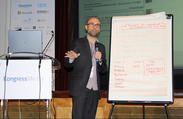 I kind of succeeded in not influencing the team with both my 10 principles of Enterprise 2.0 explained to Managers or Schein’s 10 dimension of the learning organisation. Midway through, as the dynamics of the teams were taking off, I backed off a bit and Harald took the lead. Gradually, the team contribution was becoming more intense. I just love these moments of collaborative creativity : it is just magical.