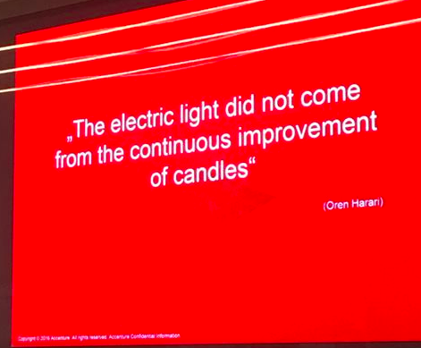 I haven’t seen the full presentation reported by this picture by Alexander, yet I can recognise the same petite musique, the same belief as the one in Aaron Dignan talk at USI 2015 where consultants draw an opposition between operational efficiency (the home of continuous improvement) on one hand and adaptability on the other. As if they were not compatible and one has to choose between one or the other.
